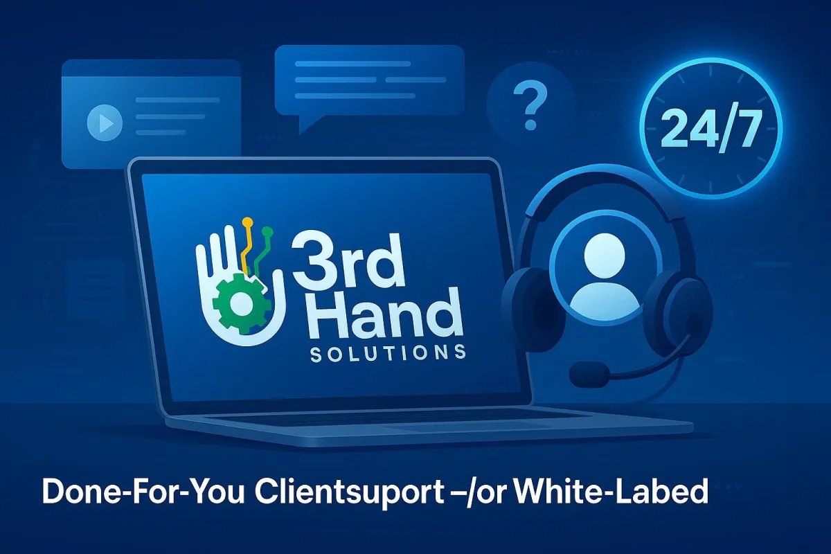 At 3rd Hand Solutions, we act as your behind-the-scenes support team — fully white-labeled and always ready. From video tutorials and interactive guides to a branded knowledge base and 24/7 live chat, we make sure your clients are supported at every step.